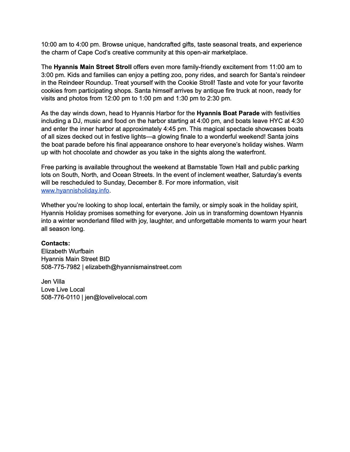 Don’t miss Santa’s arrival by antique fire truck- you’ll even have the chance for visits with the big guy. Get your holiday shopping done (or started!) at the Sip & Shop Kick-off Friday night, vote for your favorite cookie in the Cookie Stroll, and enjoy a day of fun and games for kids from one to ninety-two!